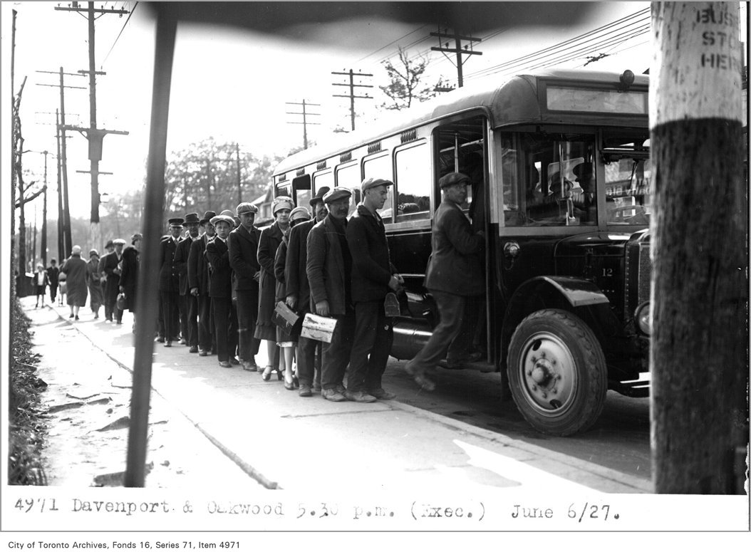 1. Photo of People Boarding a bus at Davenport and Oakwood, Toronto, in 1927 is in the public domain.